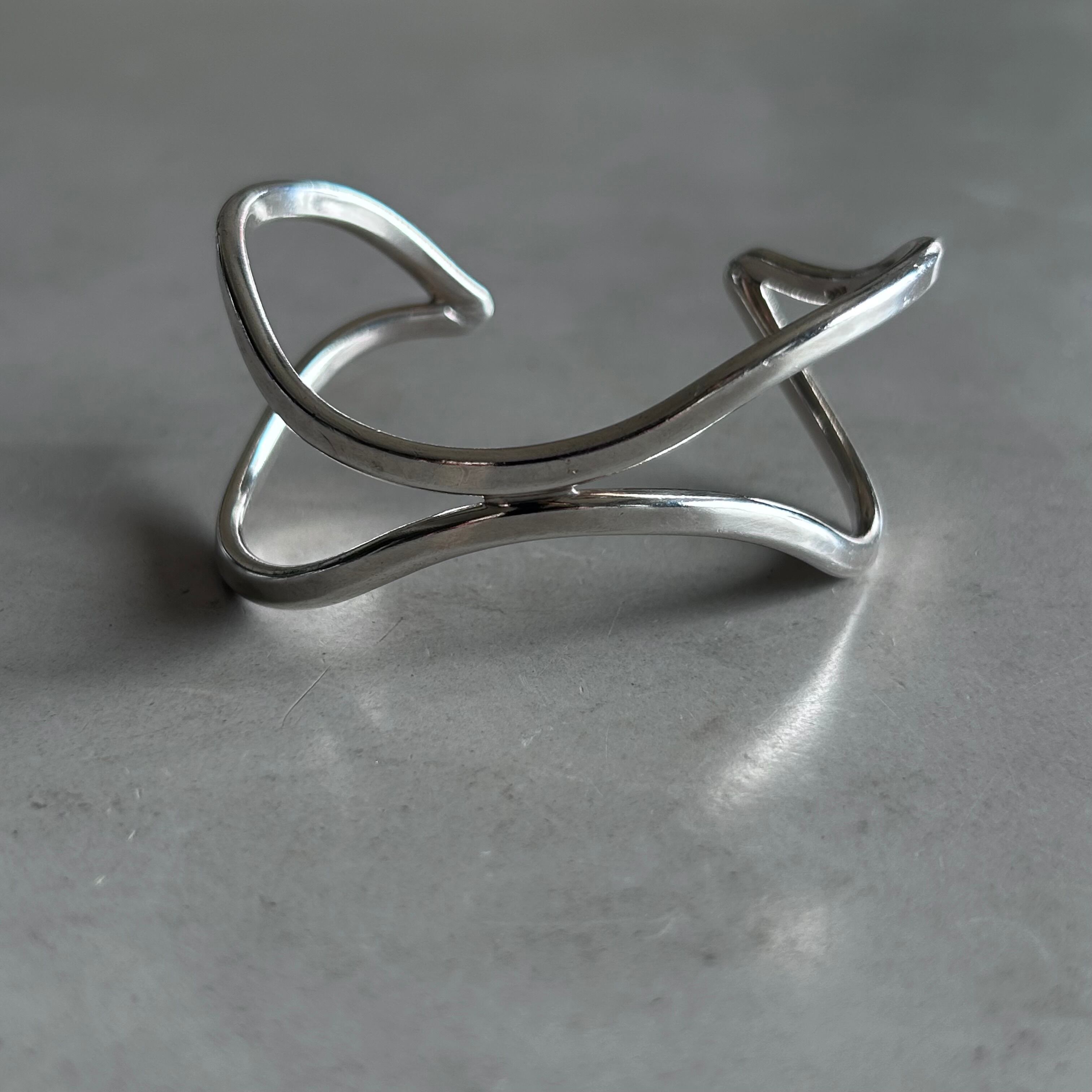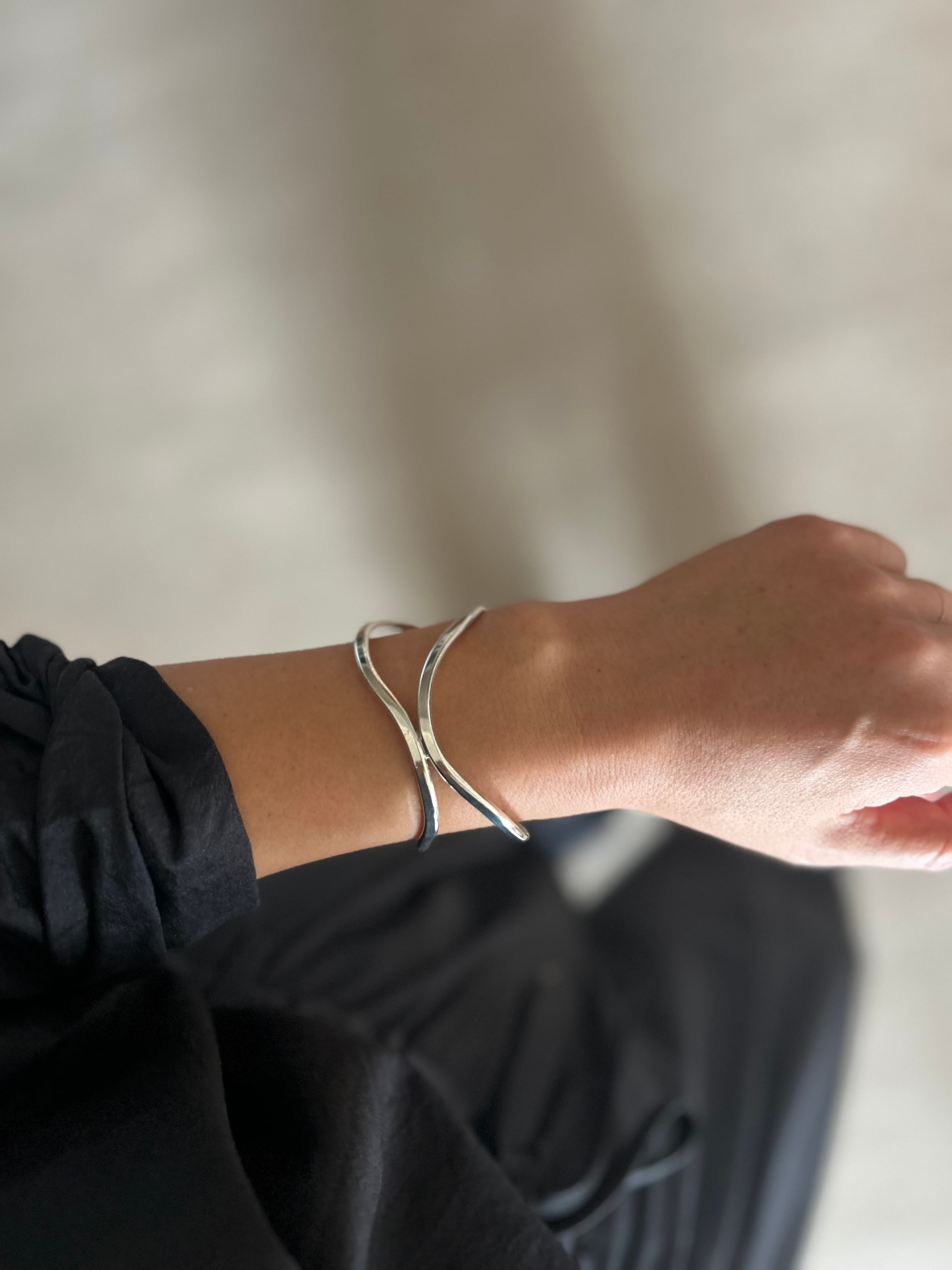 Vintage Silver Wavy Open-Work Cuff Bracelet