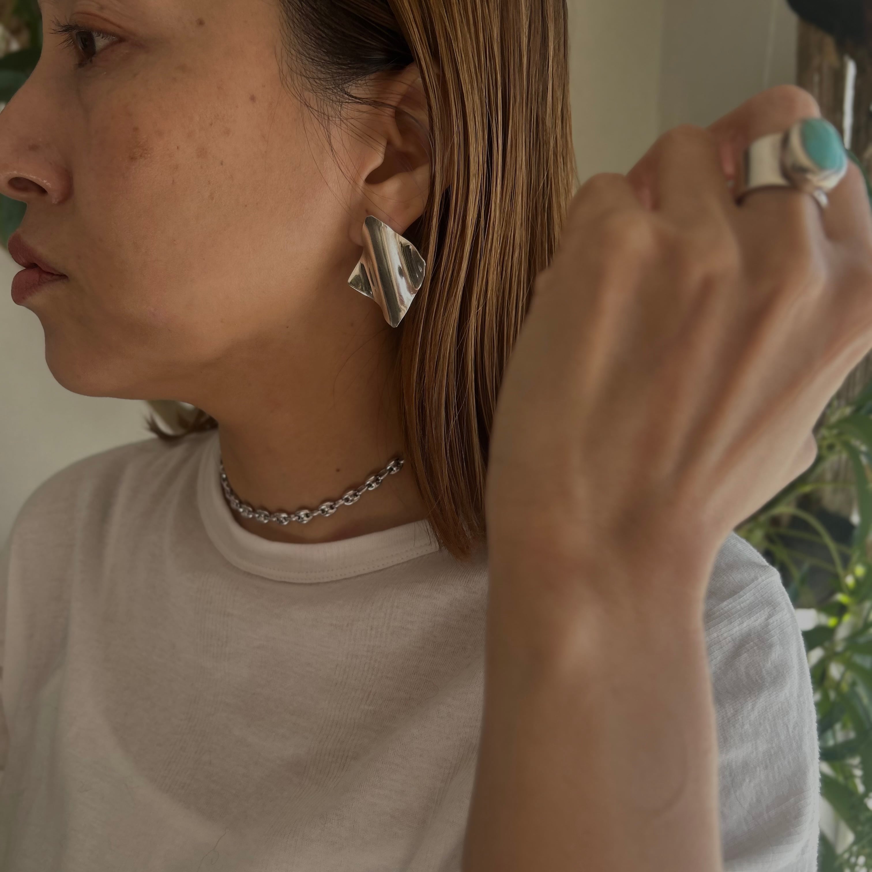 Vintage Wavy Square ピアス
