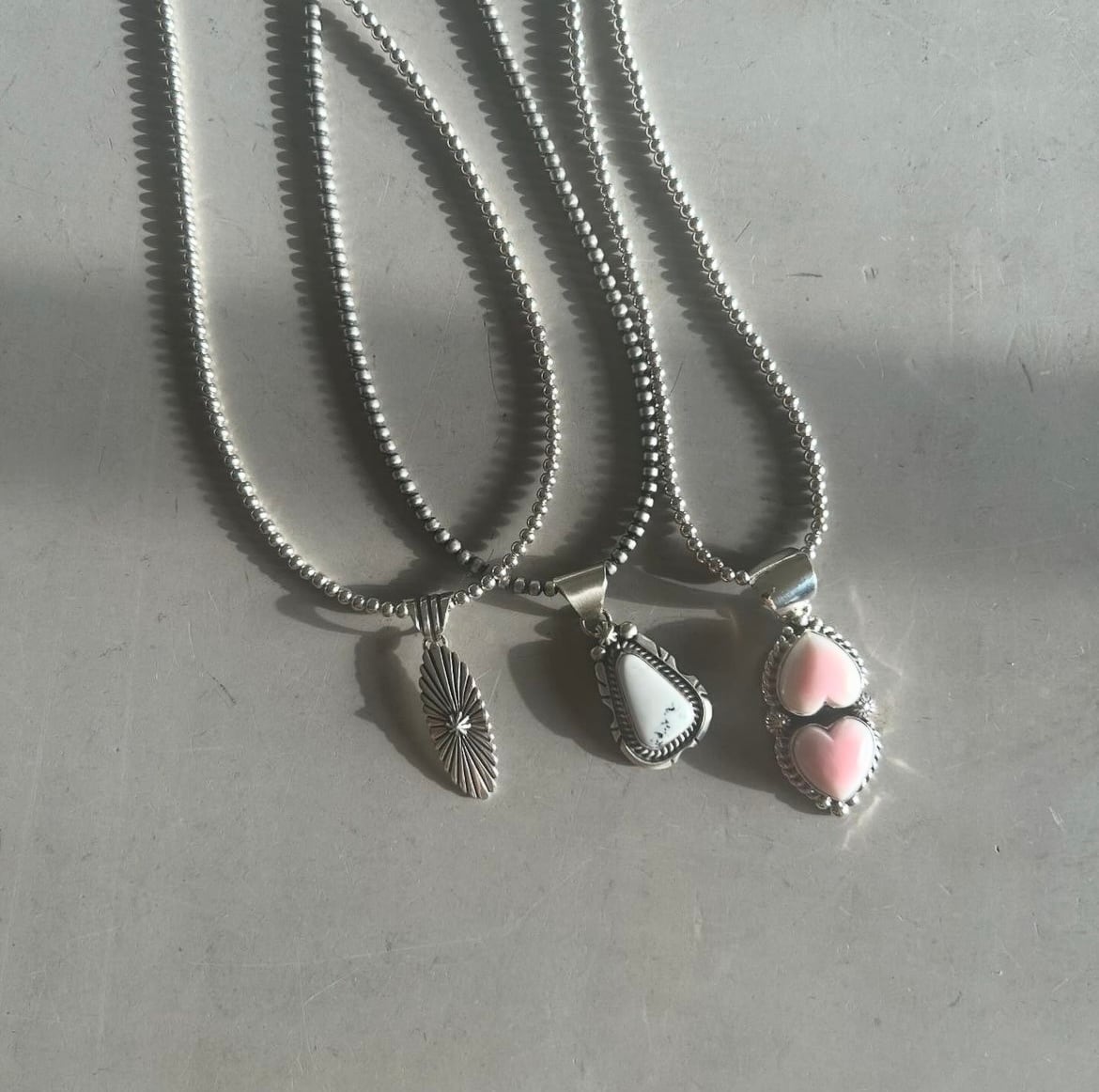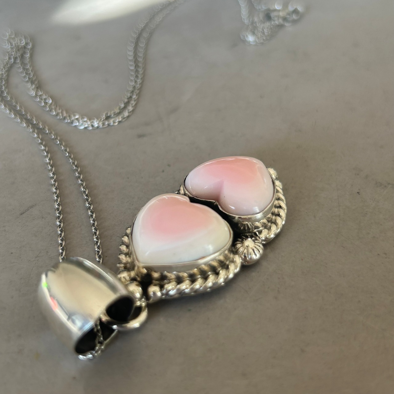 Navajo ピンクコンクシェル ダブルハートネックレス