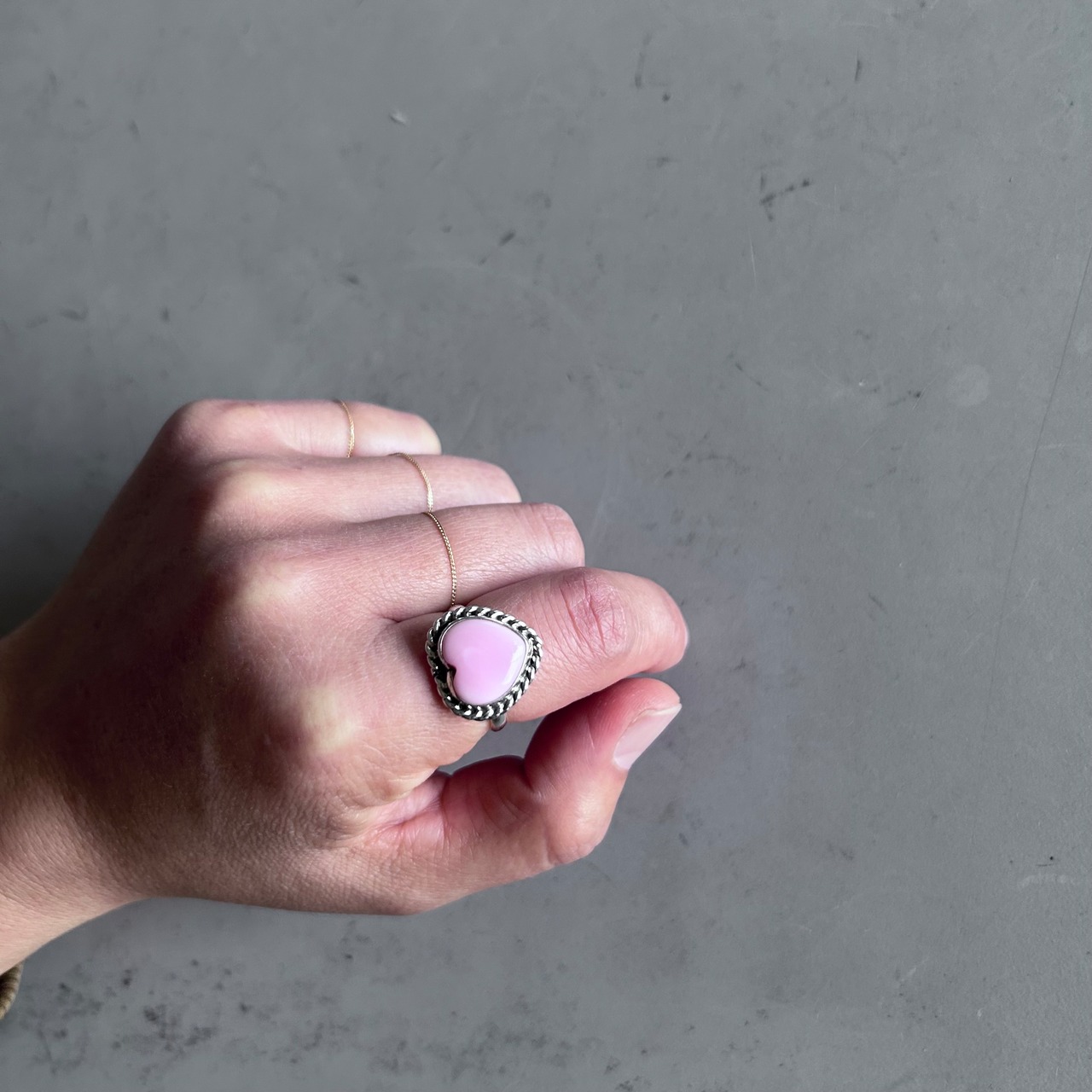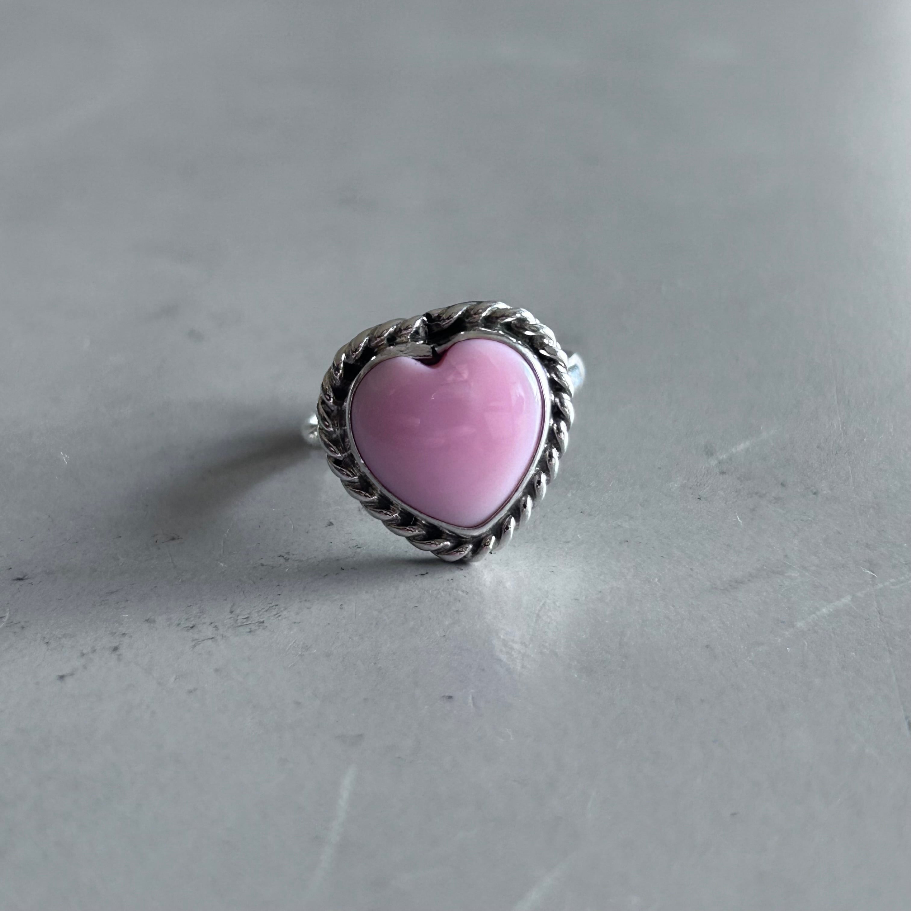 天然ならではのピンクコンチシェルの色合いがかわいいハートのリング