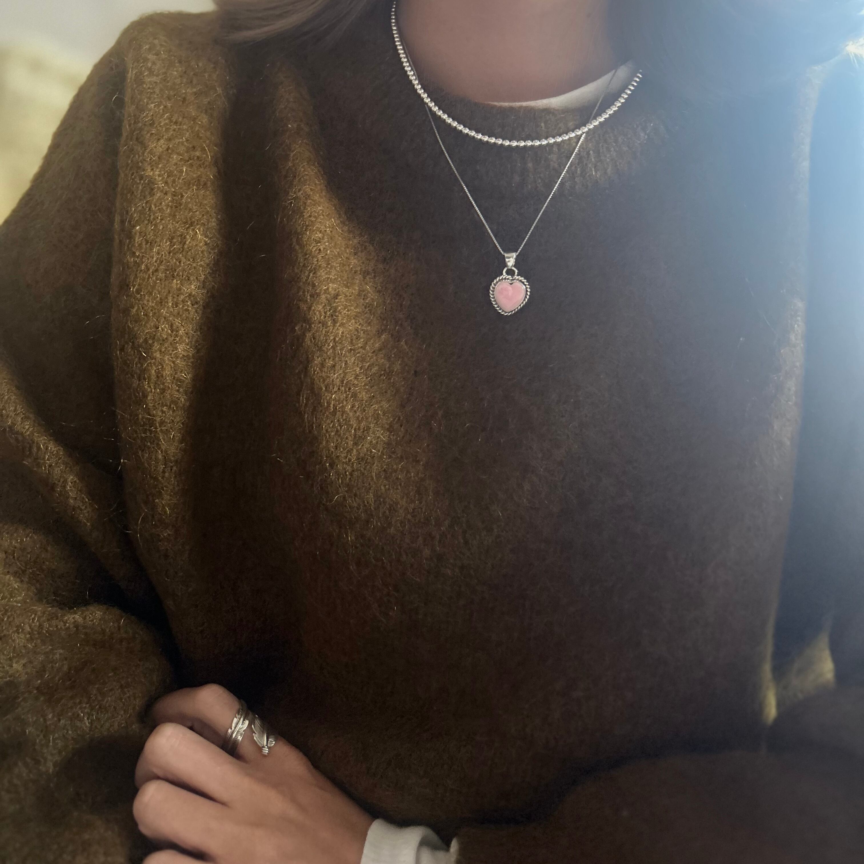 天然ならではのピンクコンチシェルの色合いがかわいいハートのネックレス
