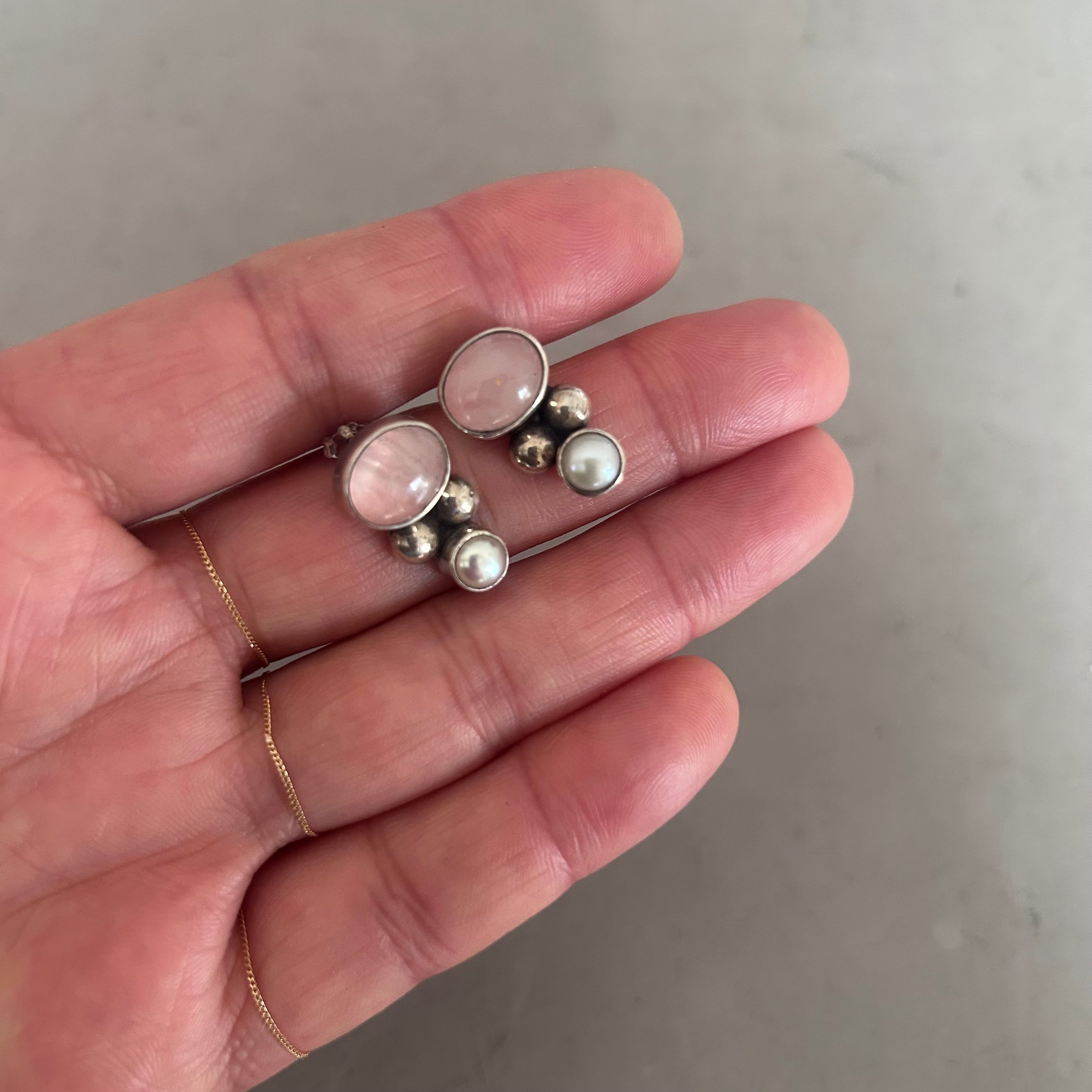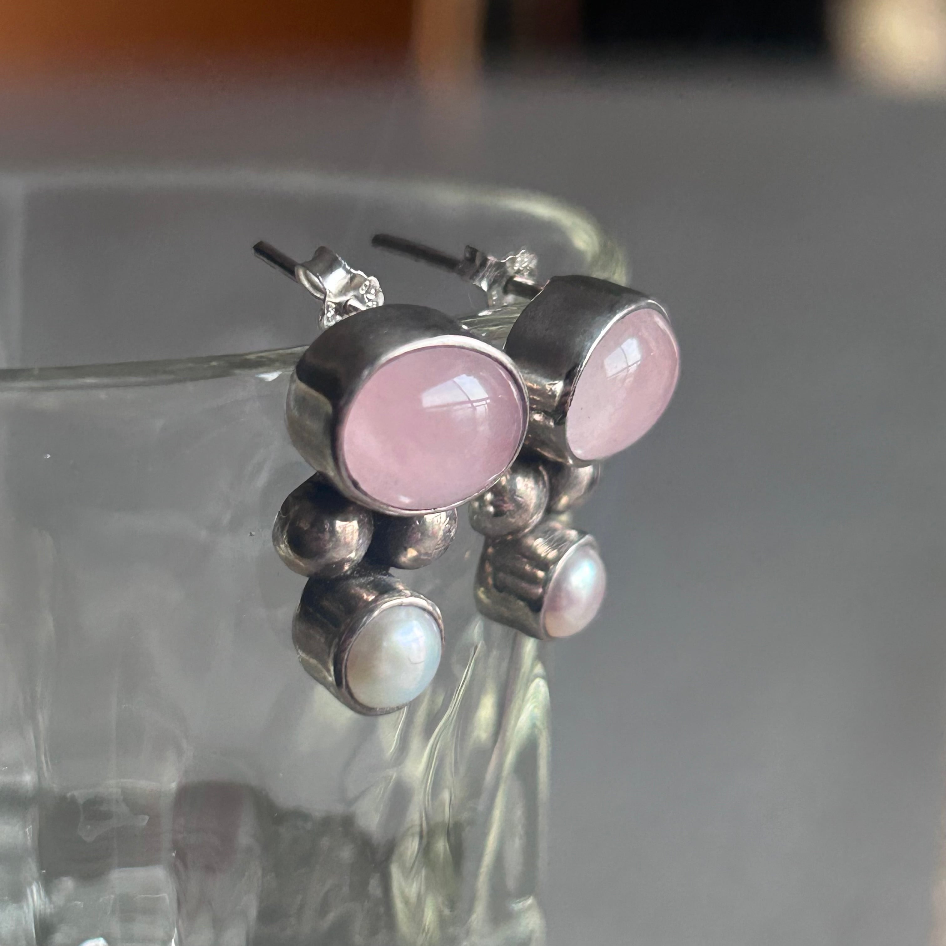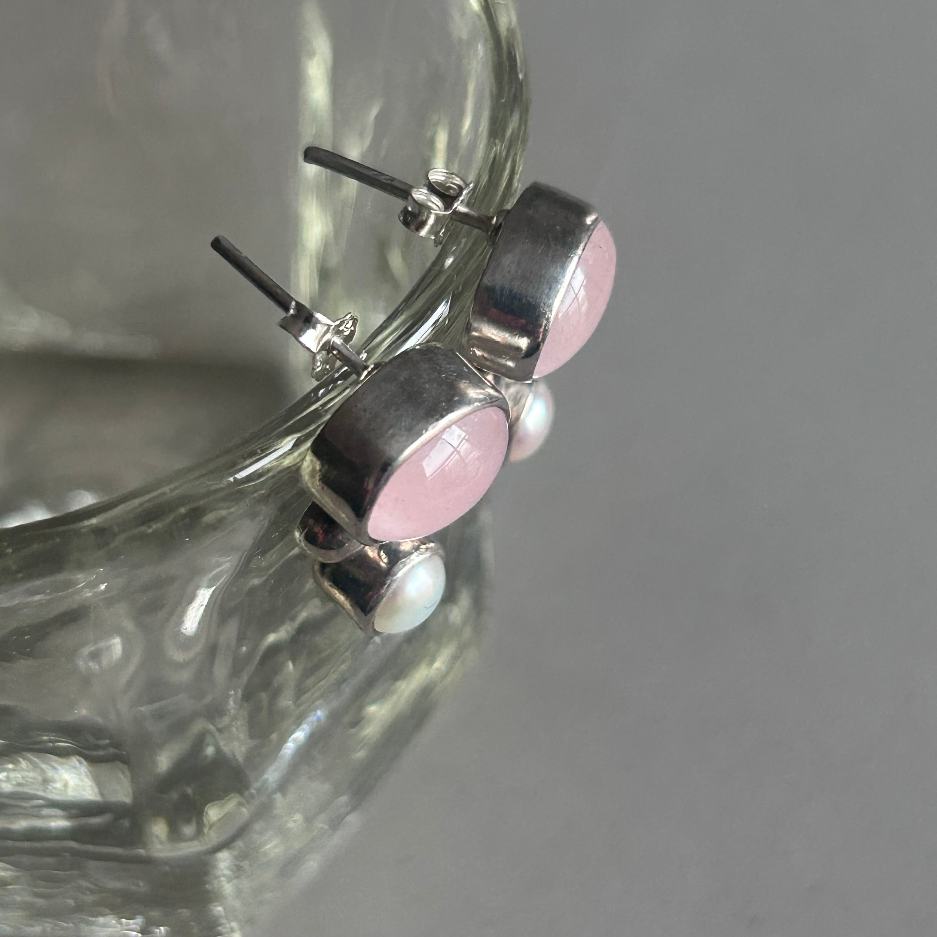 Vintage ローズクォーツ&淡水パールピアス